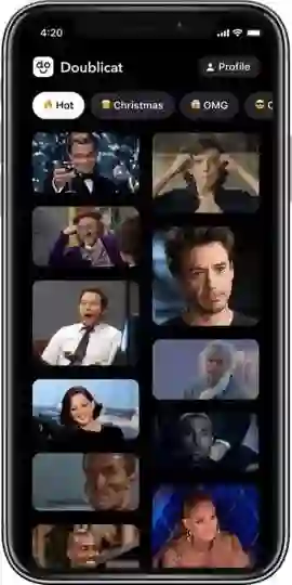 现在,你大可不必如此麻烦,一款名为Doublicat的应用可直接将您的脸部叠加到任何GIF上,并且完成整个过程只需要几秒。