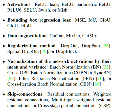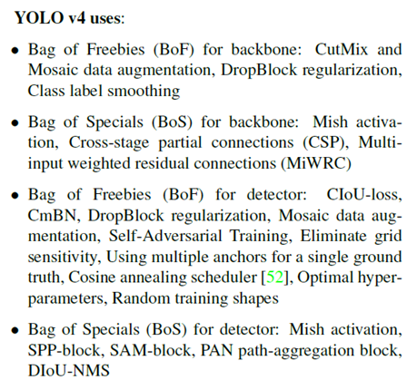 2.在训练时使用BOF(Bag-of-Freebies)与BOS(Bag-of-Specials)模型优化技巧