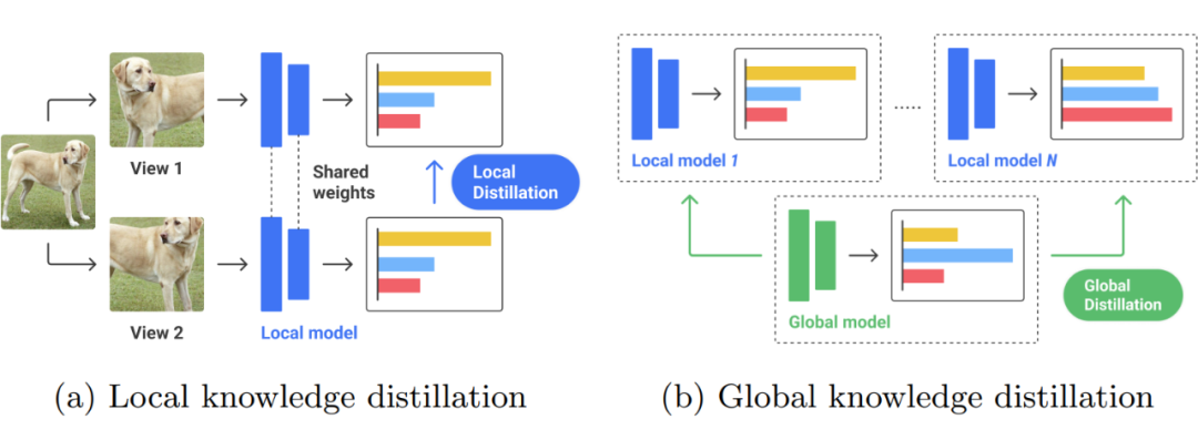 提出了无监督的联邦学习算法 FedX,使用了局部与全局两个阶段的蒸馏来学习不同客户端的数据表示;两阶段的知识蒸馏能够发现有意义的本地数据向量表示,同时通过全局的知识蒸馏消除不同客户端之间的偏差;