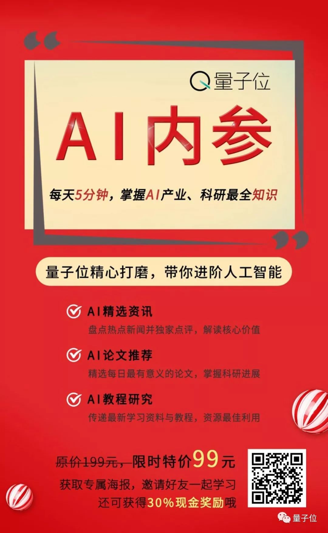 欢迎对AI感兴趣的同学,在量子位公众号(QbitAI)对话界面回复关键字“微信群”,获取入群方式。(技术群与AI+行业群需经过审核,审核较严,敬请谅解)