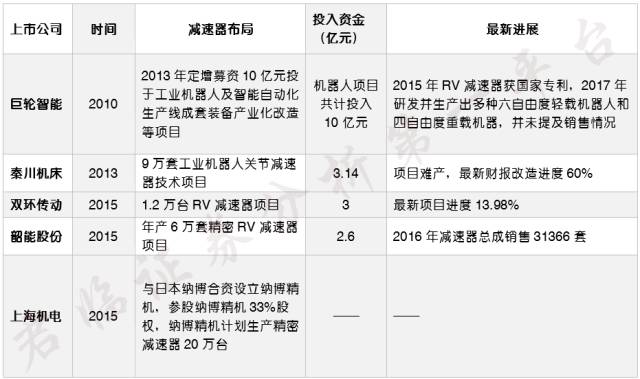 近来,一些本土企业已经向这个领域艰难进发,以下是部分上市公司在减速器方面的布局:
