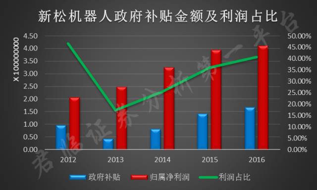 2016年,新松收到的政府补贴甚至占当年上市公司净利润的40%。