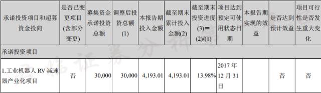 在2016年的年报中,9万套工业机器人关节减速器改造项目完成进度,仅有60%。