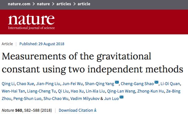 北京时间今天凌晨,Nature刊发了中科院院士罗俊团队最新测量的万有引力常数G值结果,这也是目前国际精度最高的G值,对于计量学和检测万有引力定律及一系列相关的空间引力探索都具有十分重大的意义。