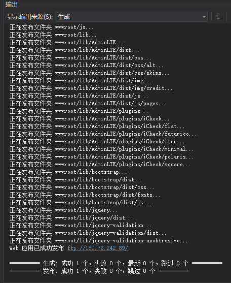 这样我们就已经配置好本地一键发布站点到远程服务器了。以后直接点发布按钮,就可以看到自动将生成的发布文件,同步到网站服务器:
