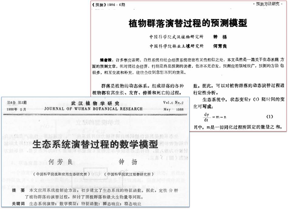 我与钟扬的友谊始于32年前。我1985年初在中科院武汉分院进修英语,班里有来自武汉植物园的同学。由于我对数量生态的兴趣,植物园的同学(已记不起名字)就把我介绍给了到中科院武汉植物所工作不久的钟扬。记忆中钟扬当时很着迷数量分类,对杨含熙先生的“数量生态学”尤为熟悉。“brilliant”、“执着”、“自信”、“快速”是钟扬给我留下的印象。那个年代的国家正处在大变革之初,“科技现代化”是当时的“中国梦”。那时生活比较简单,没有什么诱惑,国际交流也非常有限,年轻人对科学的追求有种初生之犊的劲头,有无穷的想象力,但想法(idea)简单,理想化。我们兴趣相投,思想碰撞,一起发表了两篇文章。一篇1986年发表在《预测》上,另一篇1988年发表在《武汉植物学研究》。从网络上竟然下载到了这两篇文章,都是有关生态系统演替模型。现在读来,仍然能感受到年轻时那种对学术追求的热情和执着,折服那时的想象力。