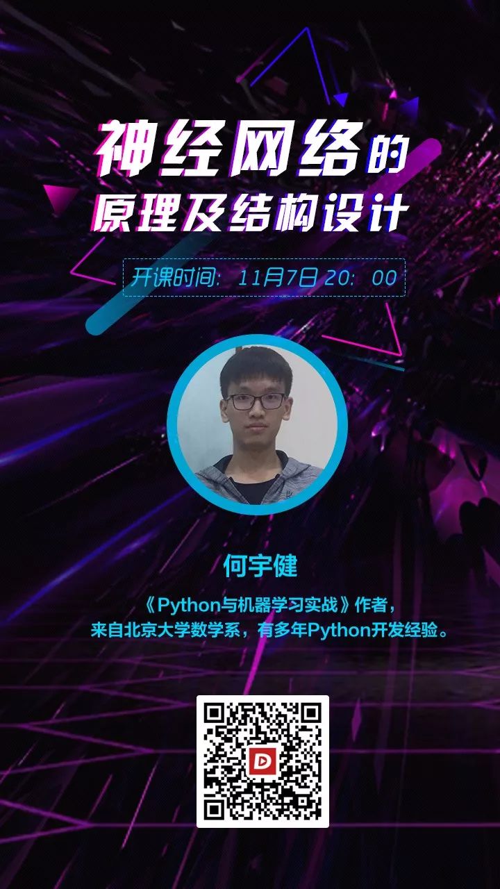 为此,CSDN学院邀请到《Python与机器学习实战》作者何宇健,他将为大家直播分享的主题为「神经网络的原理及结构设计」。