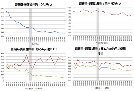 (对比为整合中的附属方数据比上主导方数据,即美丽说数据/蘑菇街数据)
