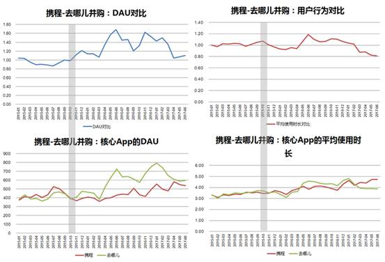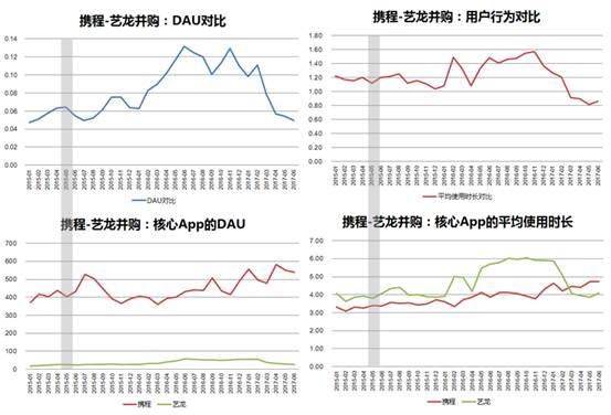 (对比为整合中的附属方数据比上主导方数据,即艺龙数据/携程数据)