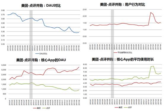 (对比为整合中的附属方数据比上主导方数据,即点评数据/美团数据)