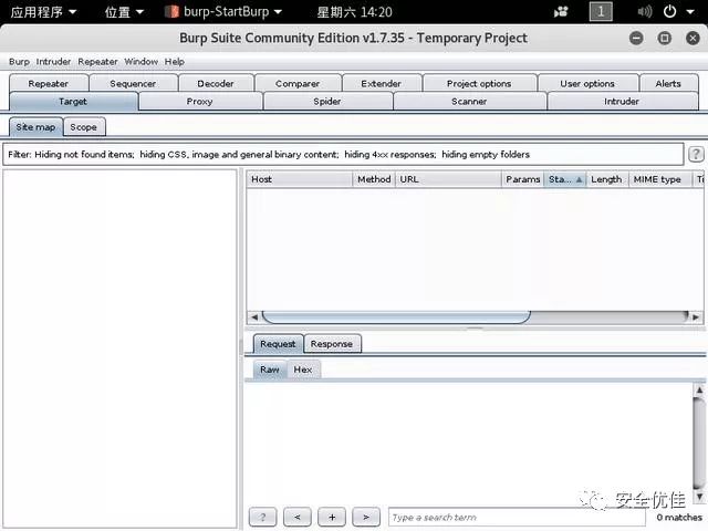 当Burp Suite 运行后,Burp Proxy 开起默认的8080 端口作为本地代理接口。通过置一个web 浏览器使用其代理服务器,所有的网站流量可以被拦截,查看和修改。默认情况下,对非媒体资源的请求将被拦截并显示(可以通过Burp Proxy 选项里的options 选项修改默认值)。对所有通过Burp Proxy 网站流量使用预设的方案进行分析,然后纳入到目标站点地图中,来勾勒出一张包含访问的应用程序的内容和功能的画面。在Burp Suite 专业版中,默认情况下,Burp Scanner是被动地分析所有的请求来确定一系列的安全漏洞。
