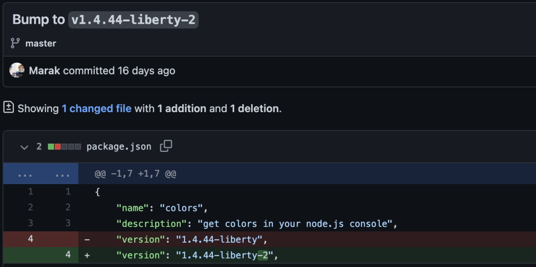 1月8日,Marak又在「colors」加入了v1.4.44-liberty-2。