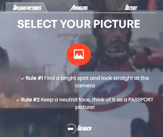 使用方法也很简单,网站上有多种动图供你选择。以替换钢铁侠的面部为例,看一看操作步骤。原图是这样的☟