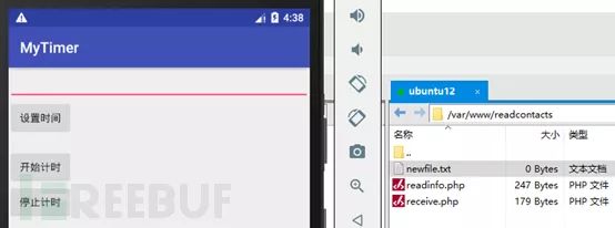 在ubuntu(192.168.159.128)服务器上搭建好php环境,然后准备三个文件:newfile.txt(用来存储接收到的信息),readinfo.php(用来展示接收到的信息),receive.php(用来接收信息)。这里使用的是虚拟机,实际中需要外网能访问的服务器,这样手机应用才能正常连接到服务器。