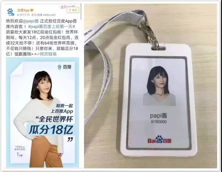昨日,百度 App 官方发微博称,papi 酱正式担任百度 App 首席内容官,并在世界杯期间特定时间段设置抢 18 亿现金红包活动。