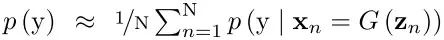 )。在博弈的纳什均衡下,模型分布完全恢复了数据分布:PG=Pdata,从而鉴别器现在无法分辨真假数据: