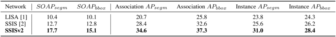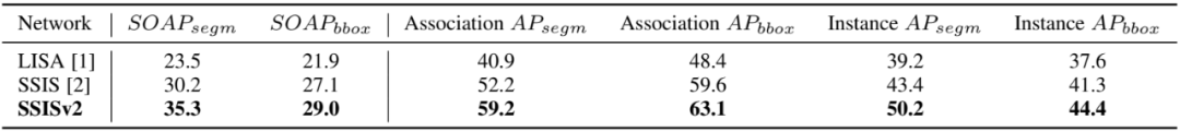 实例阴影检测结果如下图 7、表 1、表 2 所示,TPAMI(SSISv2)与 CVPR 2020(LISA)与 CVPR 2021(SSIS)等方法相比有了明显的提升。