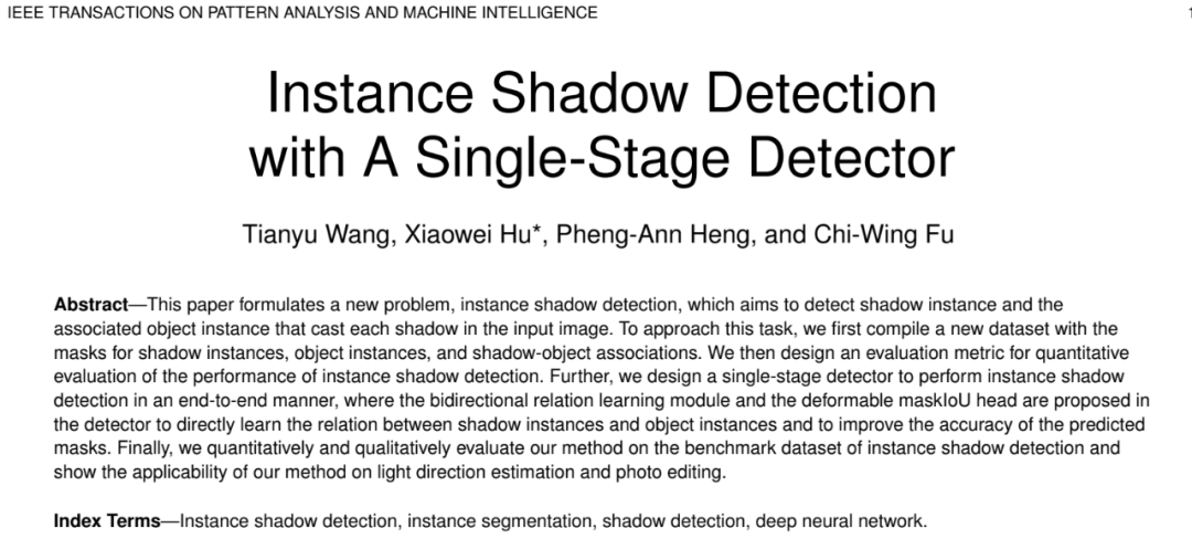 该文章的会议版本首先发表在 CVPR 2020 以及 CVPR 2021 (oral),最新于 TPAMI 提出的单阶段实例阴影检测算法在复杂场景下大幅提升了检测性能。