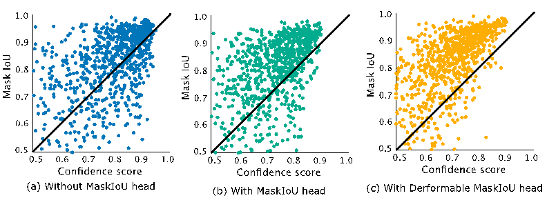 图 5: 有无可变形 MaskIoU Head 的置性度 vs. MaskIoU