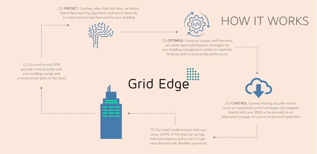 英国的一家名为Grid Edge的公司(提供基于云计算的电力管理软件服务)声称,他们利用人工智能技术对能源配置进行了预测和优化,实现了将控制权交还给了电力使用者。具体的方法是,Grid Edge操作一个VPN,通过它来连接和分析用户所在建筑的能源消耗数据,利用这些信息,Grid Edge与连接的电网进行通信,并制定相应的调度策略。这些策略的目的是节约能源,避免超载。