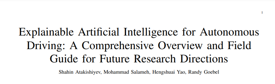 然而,在目前的技术水平下,自动驾驶汽车中的智能决策通常不为人类所理解,这种缺陷阻碍了这项技术被社会接受。因此,除了做出安全的实时决策外,自动驾驶汽车的AI系统还需要解释这些决策是如何构建的,以便在多个政府管辖区内符合监管要求。