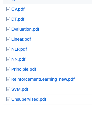 可以看到,在人工智能导论的“学习”目录下主要包含了计算机视觉、自然语言处理、强化学习、DT、神经网络等方面的教学课件。