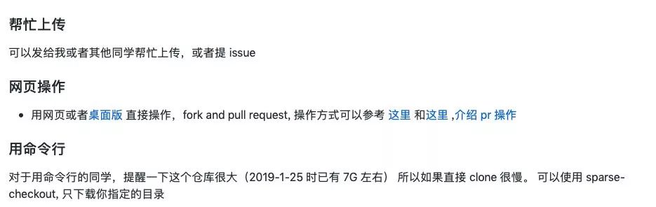 不过,目前该项目中的很多课程资料并不完善,作者也希望通过能有更多人的参与,主要有三类投稿方式: