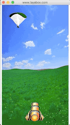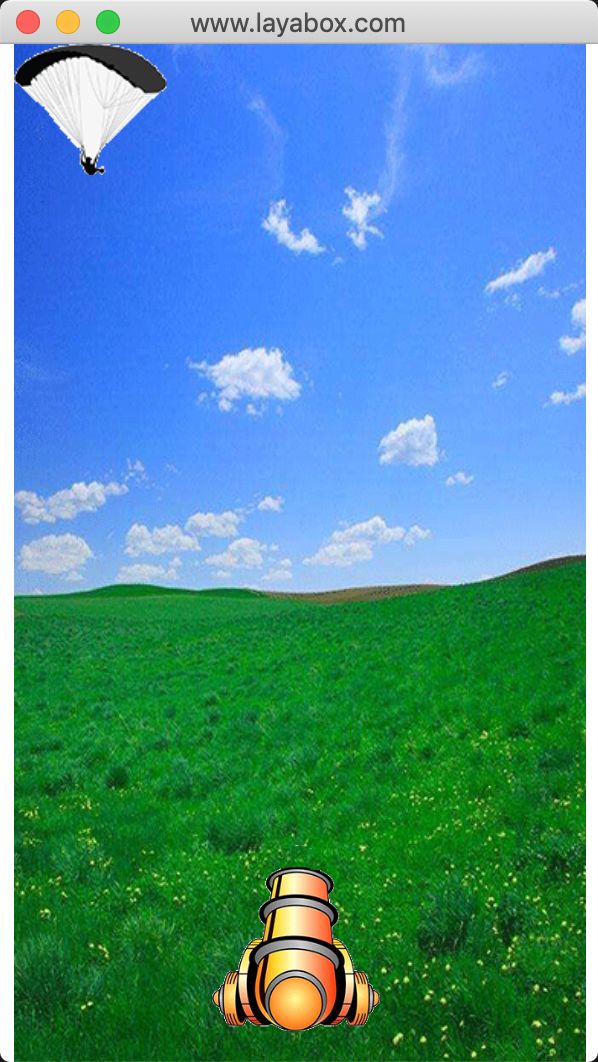 炮弹向上飞,就和伞兵向下掉一样,在帧循环里不断修改y值就可以。但是这次,我们要响应事件了,必须点击大炮,触发点击事件后,才发射炮弹。