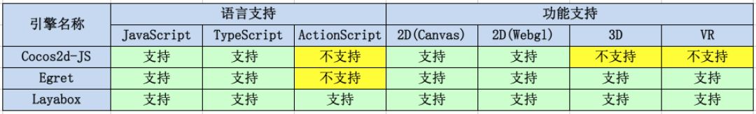 目前支持微信小游戏的引擎,有Cocos,Egret,Laya,我们先看下三者的功能比较: