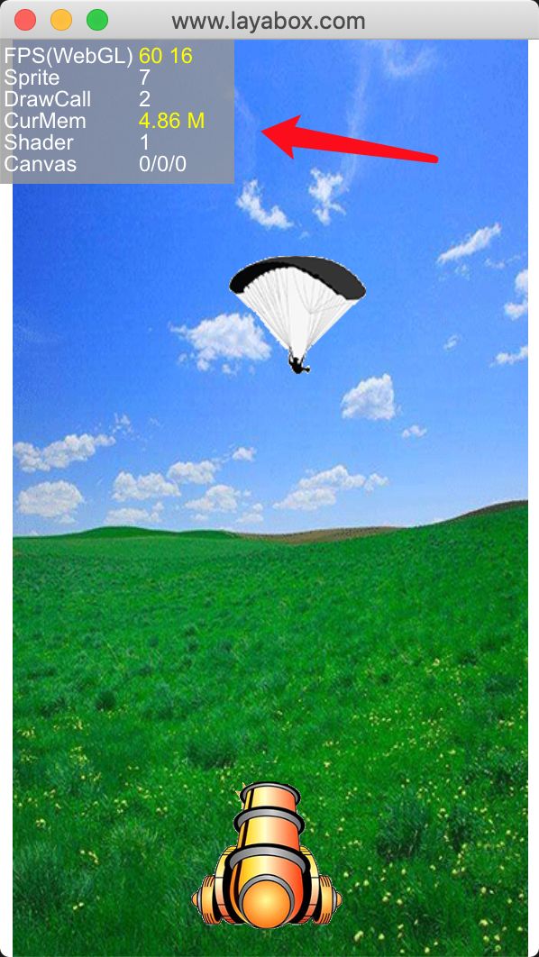 上面清楚的显示了目前的FPS、Sprite的数量、DrawCall 、内存消耗等,我们优化的目标就是把这些值降低下来。