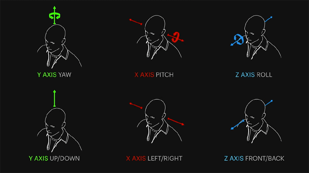 6DoF 即 6 自由度,除了具备在 X、Y、Z 三轴上旋转的能力之外,也具备在 X、Y、Z 三轴上移动的能力。图源:https://www.sohu.com/a/395726052_491768