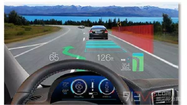 还有HUD抬头显示玻璃,驾驶员只要正常驾驶,就可以在玻璃上看到实时的路况、车速等信息。