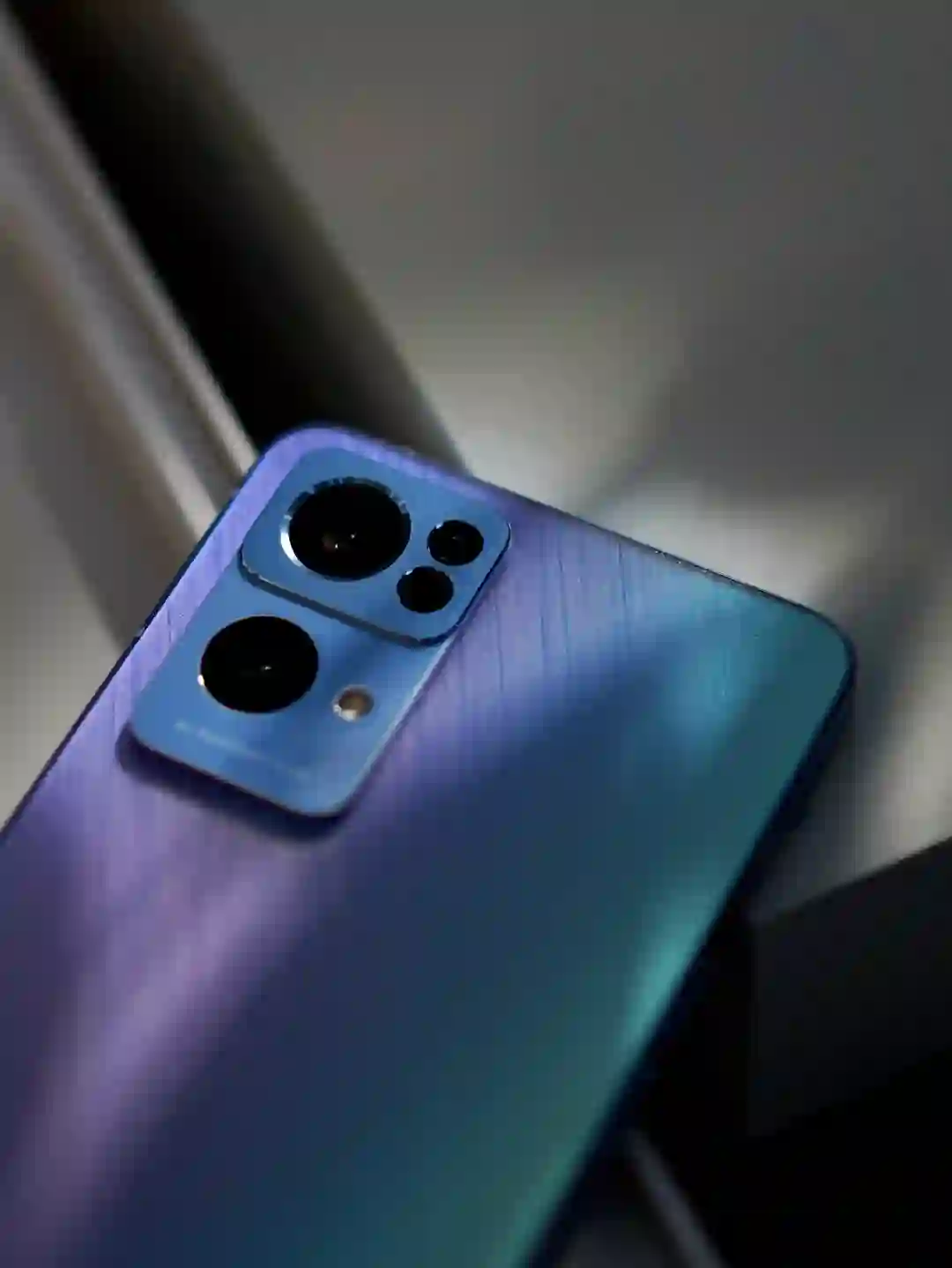 回到手机本身,Reno7系列的一大亮点,是在玻璃背板上创新性的采用了LDI光刻工艺,120万道细密痕迹带来的浪漫星雨,在不同的角度下呈现出不同的颜色,提升了手机的颜值,让人眼前一亮。