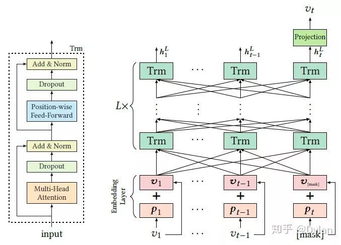 “We modify the attention by forbidding all links between Qi and Kj (j > i) ”。整体结构脱胎于Transformer,不同点在于在Self Attention Layer保证了left-to-right unidirectional architectures,进行一层Mask处理就好了。