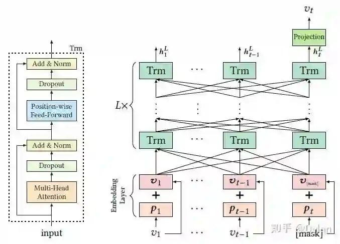 对Transformer一个直接的应用,通过引入position embedding弥补序列信息缺失的问题,产生再结合other feature做mlp来进行item预测。引入position信息,是Transformer用到序列化推荐时常用的手法,但是是否能够替代掉真正sequence还需要结合应用场景实践分析。