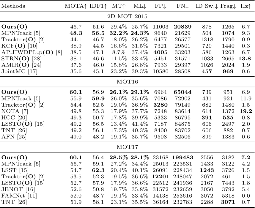 备注信息: MOT15~17: 60.1, 60.4, 48.1 MOTA (public)