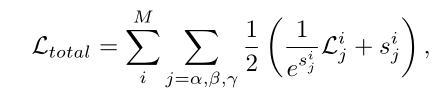 其中的 s 是一种度量不同任务下个体损失的不确定性因子,详细的原理可参见 CVPR 2018 的 Multi-task learning using uncertainty to weigh losses for scene geometry and semantics 关于方差不确定性对于多任务权重的影响分析。