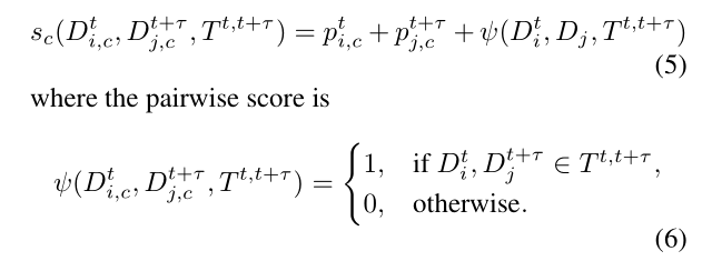 最后对于多目标跟踪的部分,作者对于两个目标的连接代价设置如下: