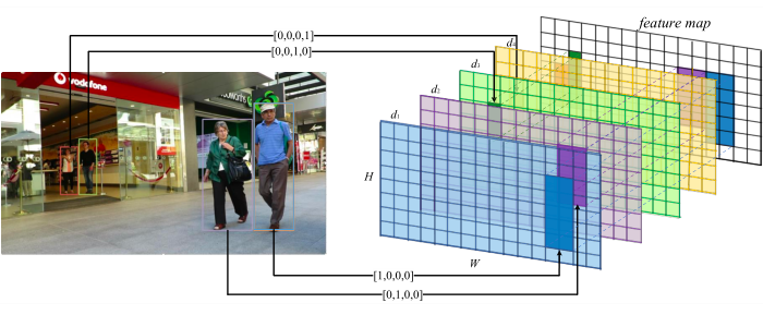 方法很巧妙,就是将每个观测框利用 one-hot 编码映射到特征图,这种方式比基于 iou 的要快很多: