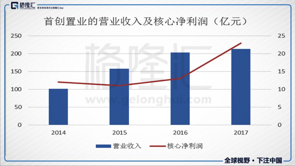 2月27日,首创置业公布了2017年度业绩,算是拉开了房企业绩期的序幕。截至2017年年底,首创置业的营业收入为212.92亿元,仅比经重述2016年的203.49亿元小幅上涨4.6%,净利润为27.97亿元,比经重述2016年的28.64亿元略微下降。