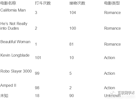 最临近取样就是把已有数据分成几类,对新输入的数据计算与已知数据的距离,距离哪一个近,就把新数据分到哪一类,例如下图所示的电影分类,对于最后一行未知电影类型的电影,根据打斗次数和接吻次数,距离浪漫型更近,应该被归类为浪漫型电影。