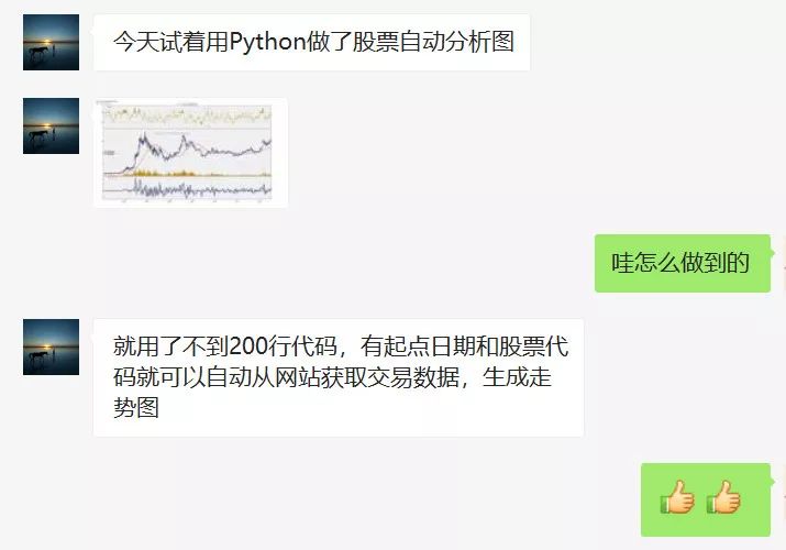 一位金融行业的同学,花了20多天学完Python后,她用不到200行的代码,自动获取财经网站里的数据生成股市分析图,帮助她更快更准确地判断接下来的走势,赢得客户的信赖。