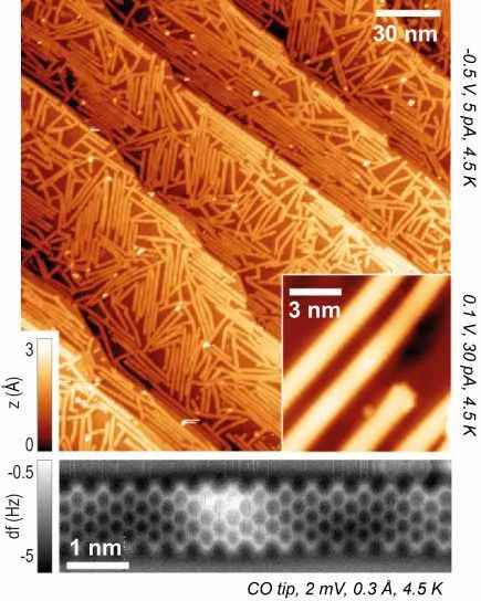 为了创造出合适的纳米带,科学家开始生长四种不同的无色分子晶体。晶体在完美的方位上锁住分子,并发生反应。然后,团队使用光线将分子缝合成聚合体,而聚合体是由重复的碳原子和氢原子单元组成的大结构。