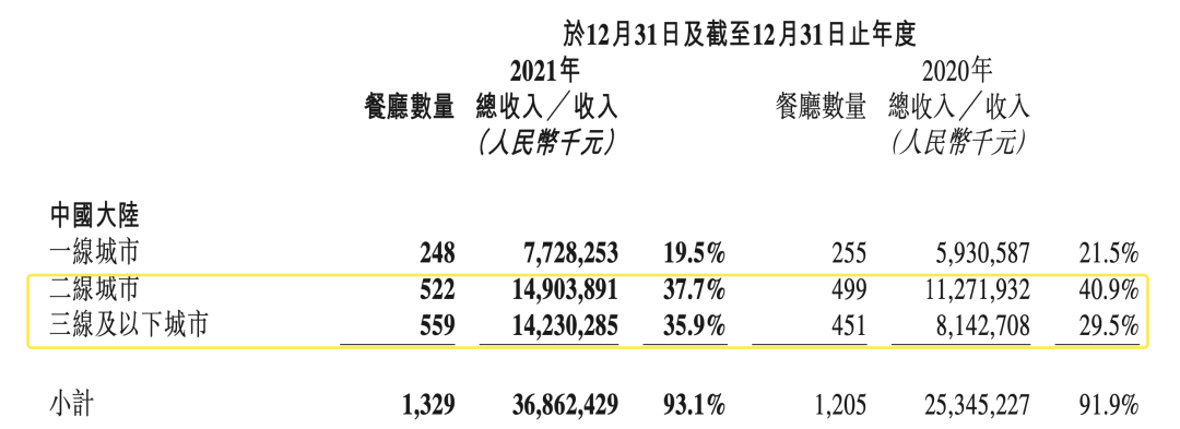 海底捞分城市等级收入表现,图据公司财报
