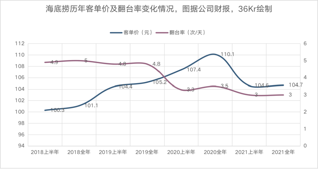 海底捞历年客单价及翻台率变化情况