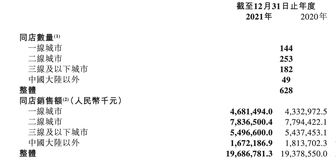 过去一年的调整下来,海底捞的经营确实释放出一些变好的信号。包括一、二、三线城市同店销售额较2020年均有一定提升。根据财报披露,截至2021年末,628家同店销售额为196.9亿元,较前一年微增3.1亿元。
