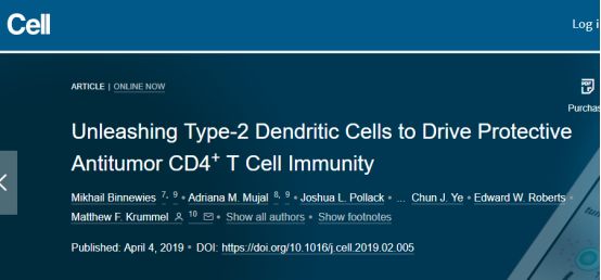 Mikhail Binnewies,et al.Unleashing Type-2 Dendritic Cells to Drive Protective Antitumor CD4+ T Cell Immunity.Cell.