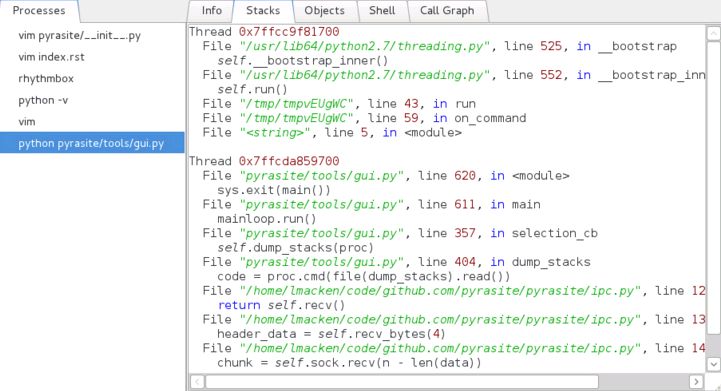 Pyrasite是一个库和一组工具,用于将任意代码注入到运行的Python进程中。
