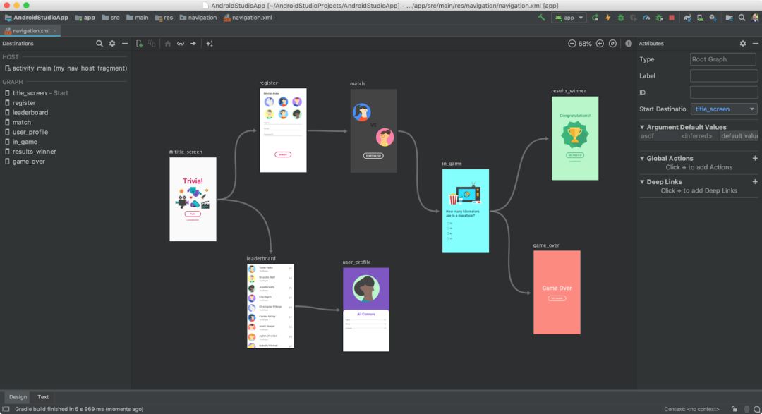 Navigation Editor - Navigation Editor 是一款可视化编辑器,主要用于构建支持新 Jetpack 导航组件的 XML 资源。开发者可以通过 Navigation Editor 和导航组件在应用屏幕和内容区域之间构建可预测的交互。在之前发布 Android Studio 中,我们仅提供了预览版的编辑器功能。在听取大家的反馈意见之后,我们保留并优化了这个功能。感谢向我们提供反馈的开发者。如需了解详情,请参阅《Navigation Editor 文档》。
