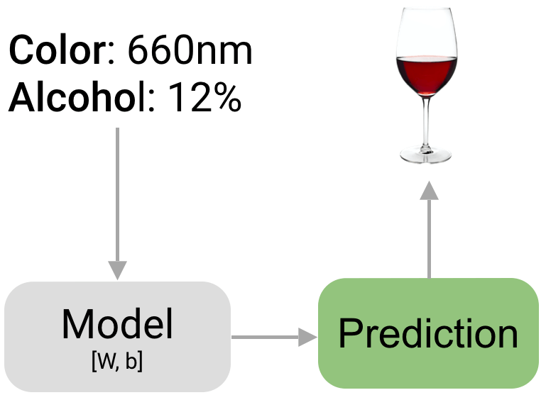 这里我们只有两个特征:颜色和酒精含量,我们用一个小型线性模型就足够了。这个模型很简单但足以完成任务。